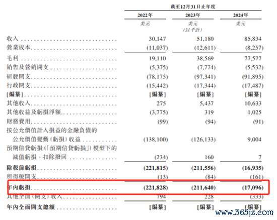 2022年至2024年,公司收入分别为3014.7万美元、5118万美元、8583.4万美元,年内亏损分别为2.22亿美元、2.12亿美元、1709.6万美元。