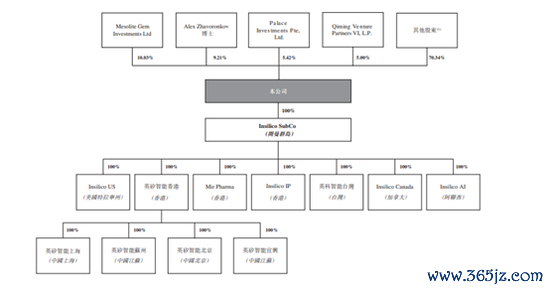 截至最后可执行日,创始人Alex Zhavoronkov博士持股9.21%;Mesolite Gem Investments Ltd持股10.03%;淡马锡通过Palace Investments Pte, Ltd.持股5.42%;启明创投通过Qiming Venture Partners VI, L.P持股5%。
